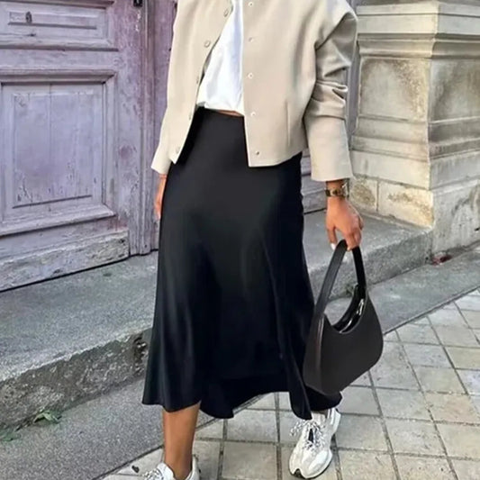 Veloura Elegant High-Waist Satin Midi Skirt